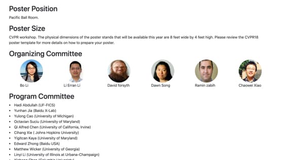 The workshop consists of invited talks from the experts in this area, research paper submissions, and a large-scale online competition on adversarial attacks and defenses against real-world systems. In particular, the competition includes two tracks, which cover two novel topics as (1) Adversarial attacks on ML defense models , and (2) Unrestricted adversarial attacks on ImageNet